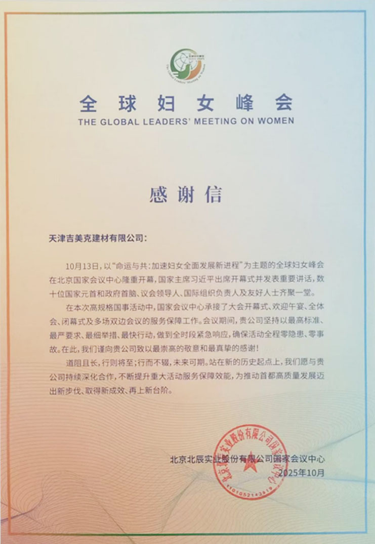 北京國(guó)家會(huì)議中心(二期)項(xiàng)目的大部分外立面鋼制門及室內(nèi)內(nèi)部主要通道的鋼系統(tǒng)門由天津吉美克建材有限公司承建。也為全球婦女峰會(huì)的順利召開,貢獻(xiàn)了力量。